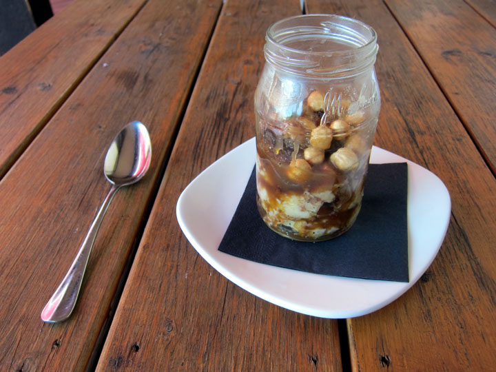 Speaking of enjoying my visit, I of course had to stay for dinner to see if the food was as good as the pottery once produced here. The meal was tasty, but the desert was by far one of the best I have ever had! I am a bread pudding connoisseur and loved their version. The “bread” was a mix of dense pound-cake and poppy seed bread drizzled over with a caramel, whiskey sauce. The crust of the bread was perfectly browned with a excellent balance of crispiness and caramelized density. This gooey creation was topped with toasted hazelnuts and served in a quaint mason jar. So delicious!