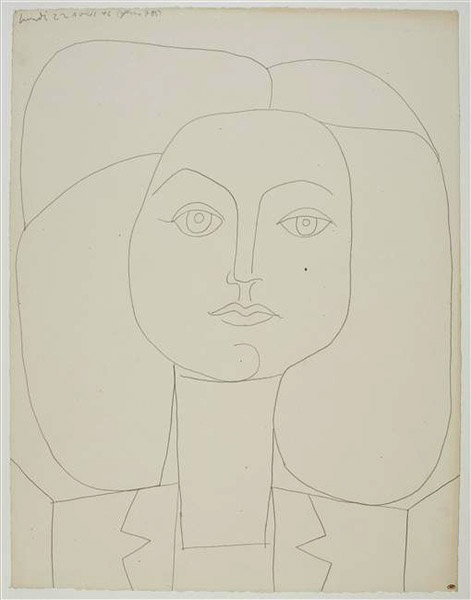 The eyes of this woman have a very sculptural quality as if Picasso were reproducing an ancient bust: