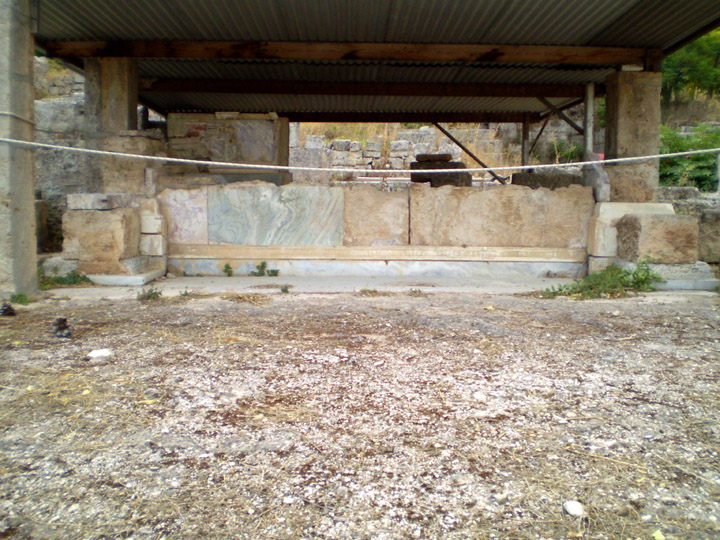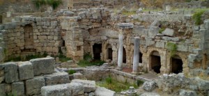 My favorite building in Corinth was the Fountain of Pirene which was in fact an extensive pool complex fed by a natural spring.  According to Greek mythology, Pirene was a water nymph who burst into a pool of tears upon learning of her son’s accidental death.  Because these fountains carried divine significance, they were elaborately decorated with an Ionic arcade of Poros marble.