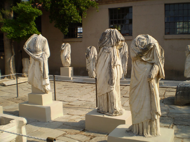 The archaeological museum on site was surprisingly basic in how it presented its pieces.  There were centuries of pottery on display, votive terracotta temple offerings, decorative marble architectural elements, bronze mini-deities, and domestic mosaics.  I was just shocked to find things arranged in old wood and glass cases.  Some things were just stacked on open shelves – one wayward backpack and we could lose a 1000 year old vase!