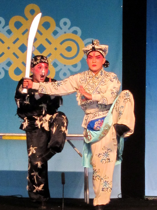 The Folklife Festival has several performance stages for musical and theater groups. I made sure to see the Zhejiang Wu Opera Troupe from the Zhejiang Province just south of Shanghai. Enhanced by dramatic make-up and costumes, the choreography was stylized and very precise. In this skit below, a warrior hunts a thief at night leading to some comical near misses as he moved stealthily from grand pose to pose.