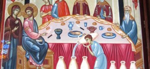 “Come,” he said moving to the cabinets. “We always share a small glass of wine with pilgrims who come to our church.” Into three plastic shot-glass size cups, he poured a small drink of an incredibly deep garnet-colored wine. The wine was much sweeter than I expected and thick so that I had to sip slowly. Already feeling grateful for the chance to drink wine with a Greek monk in Cana, I thanked him for the beautiful church. I explained how breathtaking and vivid the art was, how much I had enjoyed seeing it, and how glad I was that we had stopped by.