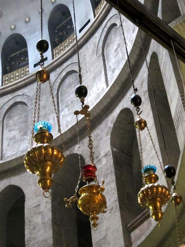 I really loved the Holy Sepulchre. The architecture and decorations were very beautiful, but I was most impressed with how visitors acted in the space. This was not St. Peter’s in Rome with thousands of people gawking and taking photos. These visitors were pilgrims (or at least very respectful tourists) and they behaved in a way that demonstrated that. If anyone was waiting in line or getting bumped by the crowd, it was because there were prayers to be said, crosses to touch to holy places, or candles to light. I realized that no one was there alone. Each person was actually visiting for all their friends and family who couldn’t come. It makes sense that what their religious culture and tradition teaches them about bringing the experience home is what you seeing being done in the church.