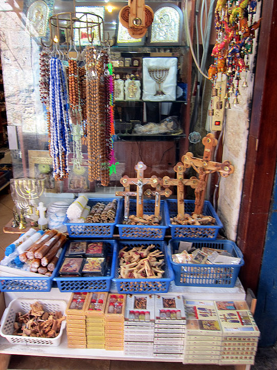 As with any tourist destination, the streets leading to the Holy Sepulchre are lined with shops selling candles, crosses, rosaries, icons, holy oil, or anything else you might want to bring home. Many pilgrims were touching these objects to the holiest part of the Holy Sepulchre, such as the Stone of Anointing believed to be where Jesus’ body was laid after being removed from the cross. While objectively this act may look superstitious, I think it is quite touching. These pilgrims want to bring something “holy” back to their loved ones. The desire to bless and share with family goes beyond the typical purchasing of tourist gifts and really underlines the spiritual aspect of the travel these pilgrims have undertaken.