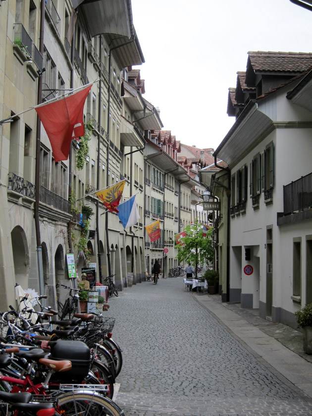 For a medieval town, the city is laid out logically with three main east-west streets that run the length of the old town. These roads were lined with square flags representing Bern and the Canons of Switzerland. They added a festive air to the tightly but neatly packed line of historic homes.