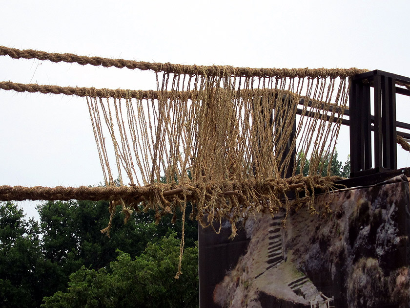 With no river canyons on the National Mall in Washington, DC, two platforms were constructed to support the bridge. I watched as the Q’eswachaka team pulled the first cable over to create the floor of the bridge.