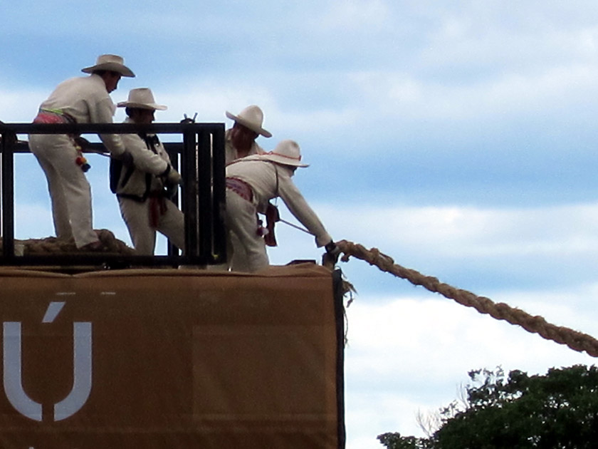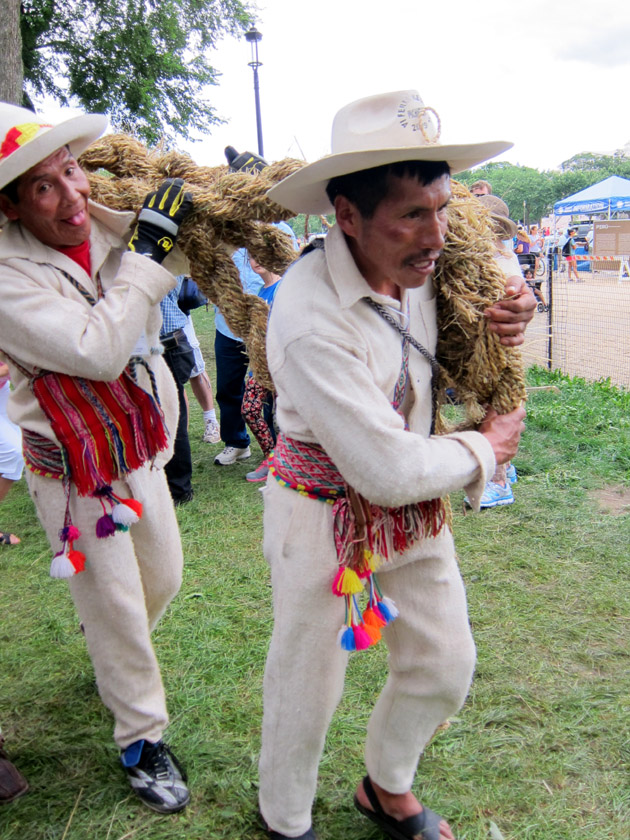 The braided ropes, hand-made from grass, are incredibly heavy. Some of the other performers (notice the nice shoes) had to help.