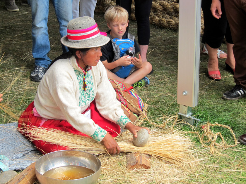 All stages of bridge construction were presented at the festival. There were women demonstrating how to prepare the grass and make the twine.
