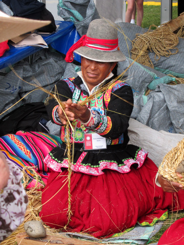 One of the highlights of the celebration was the construction of a traditional rope bridge. The Q’eswachaka Bridge spans the Apurimac River Canyon in the Southern Andes. The techniques for fabricating the twine from grass, braiding the twine into rope, constructing cables, and building the bridge have been handed down for hundreds of years. The bridge is replaced annually and only takes three days to construct. This bridge, along with the cultural knowledge needed to maintain its traditional construction, has been designated as a UNESCO World Heritage site.