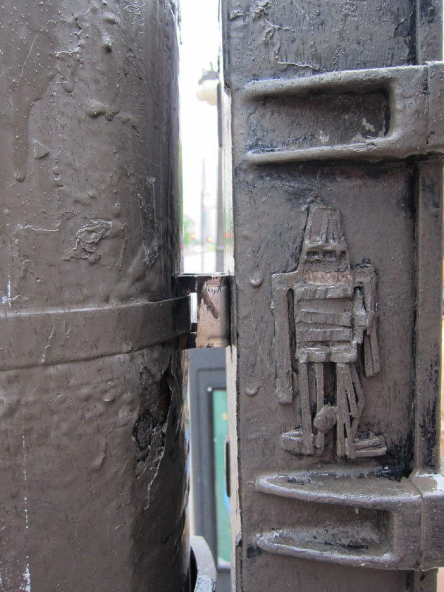 I posted not too long ago about Stikmen popping up near Boston, so I was on the look out for them in Chicago. I didn’t find any of the road decals but I did find one of the original stick figures. The Art Institute of Chicago sits on Michigan Avenue with the front steps looking down S Adams Ave. As you cross Michigan, literally a few yards from the Chicago Art Institute, there is a Stikman glued to a street light utility box and painted for camouflage. Thousands of people walk this way every day to enter the Museum. I wonder how many noticed the Stikman? I wonder how long he’s been there?