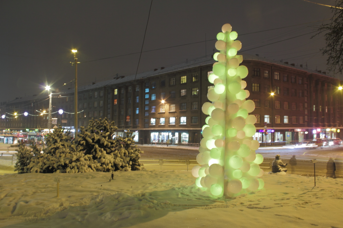 One of my favorite parts of the holiday season is the festive decorations.  From wreaths to bows, snowflakes to candy canes, I love how city streets, shop windows and public buildings are transformed.  Riga, the capitol of Latvia, has taken this one step further and is sponsoring a public art exhibition called the Christmas Tree Trail.  Artists and students have constructed modern interpretations of  the classic Christmas tree.  These fantastic sculptures are on display throughout the city from December 6 – January 12.  Let’s take a look at some of my favorites!