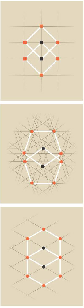 4-fold (above) and 6-fold (below) rotations preserves the translational symmetry of design. 5-fold rotation (middle) generates a new disordered pattern. (Source: Sven Lidin, Nobel Prize Committee)